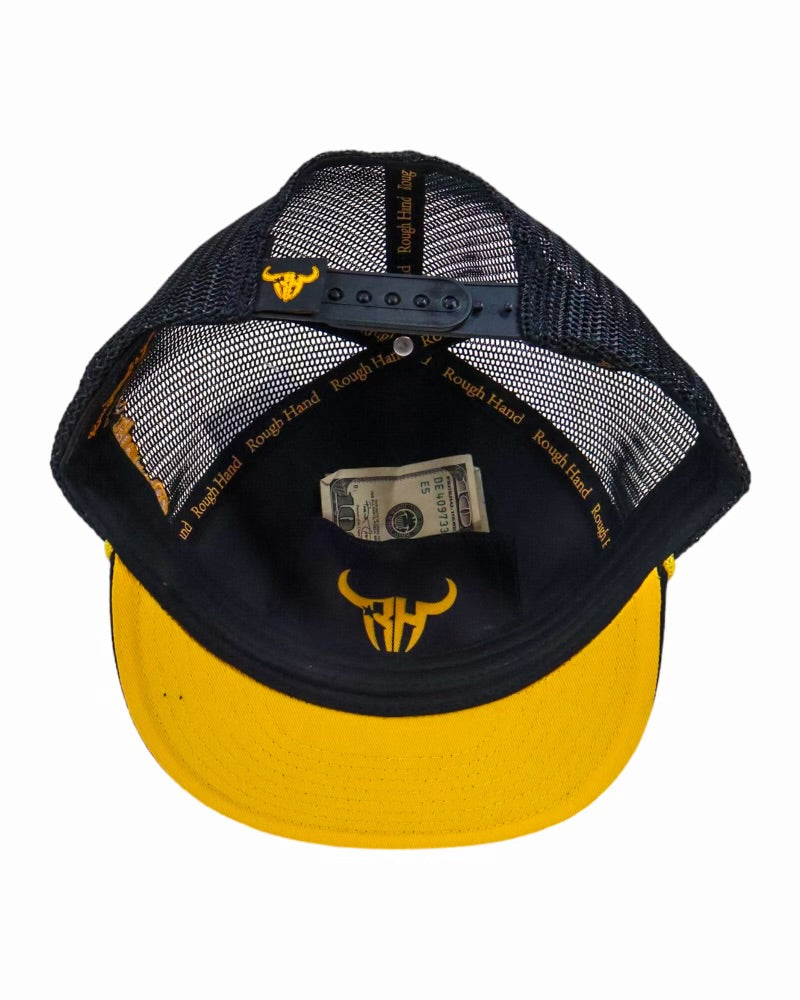 The Classic Trucker Cap by Rough Hand Brand – ideal for your outdoor cowboy lifestyle. Premium mesh panels increase breathability, while the hard buckram ensures a sturdy shape. A matching plastic snapback offers a customizable fit, ideal for riding through the range. Quality and detail ensure it can keep up with any challenge.
